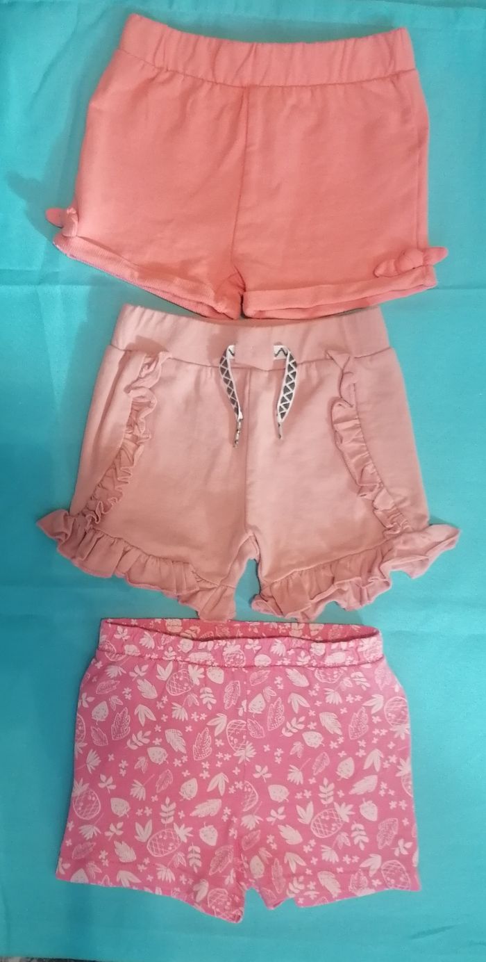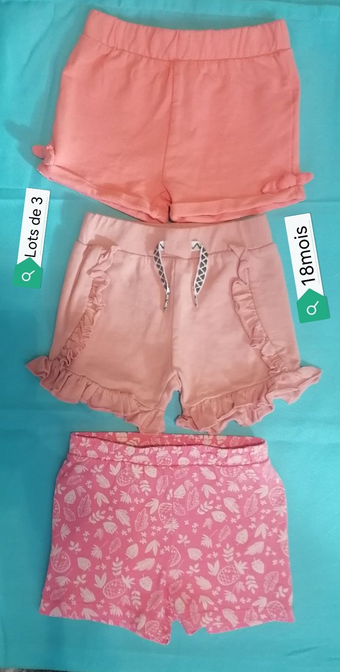 Lots de 3 shorts été filles. 18mois /86cm. 1) orchestra. orange 95%coton. 5%elasthane. 1) Luckykid. Rose. 95%coton. 5 %elasthane. 1)Inextenso rose fleuries. 100%coton. Porté. Le lots : 7€€