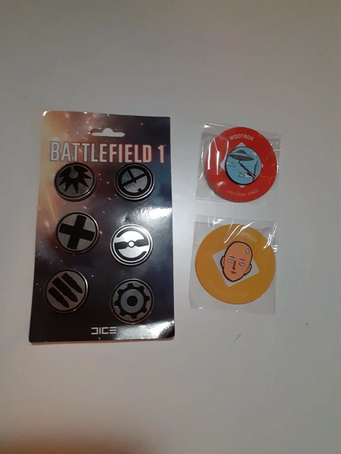 6 pin's battlefield 1, 1 saitama et 1 mars attack. En très bon état. Retour possible sous 14jours lot entier.