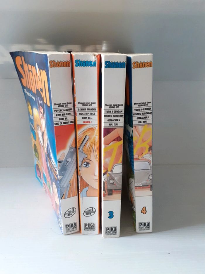 #mangastephbreizh44 2 shonen de 2004 ( mars et avril ) 2 de 2003 ( mars et avril) Celui d'avril 2004 a un défaut sur la tranche a voir sur photo. Pas de pages dechirées . Retour possible sous 14jours lot entier