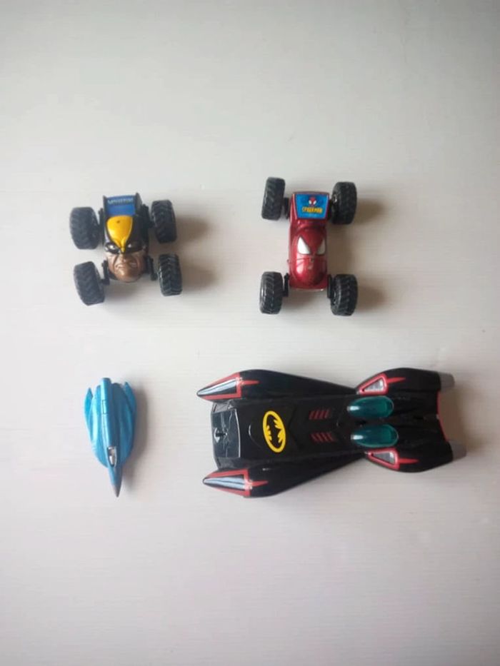 #batmanstephbreizh44 #marvelstephbreizh44 #dcstephbreizh44 2 voiture avec 3 parties amovible avec spiderman et wolverine. 2 vehicule de batman qui ne sont pas complet. Retour possible sous 14 jours, lot entier.