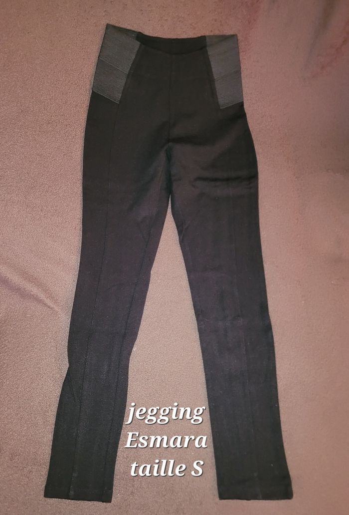 Lot de 2 jeggings, marque esmara et Camaïeu. Assez bon état, taille 34/36, noir. Un peu détendu au niveau de certaines coutures.