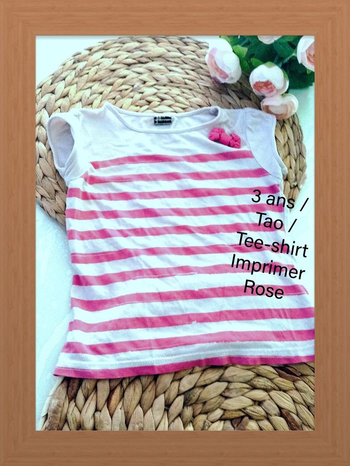 3 ans tao Tee-shirt imprimé rose et blanc /très bonne état - photo numéro 3