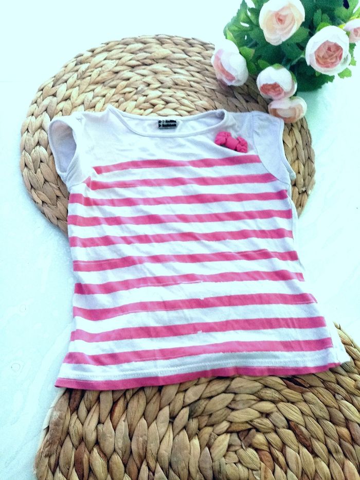 3 ans tao Tee-shirt imprimé rose et blanc /très bonne état - photo numéro 4