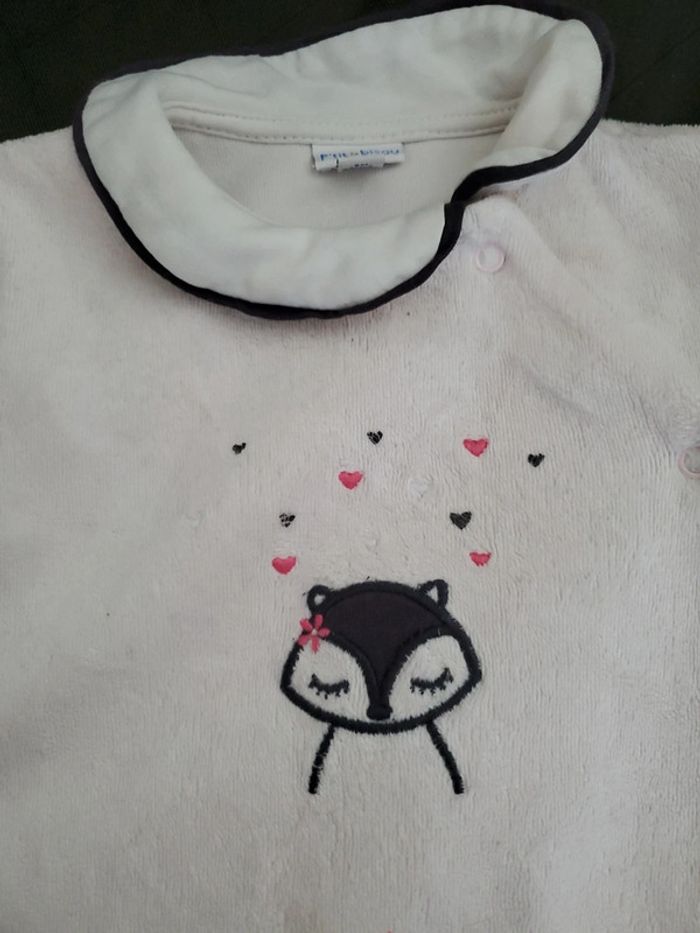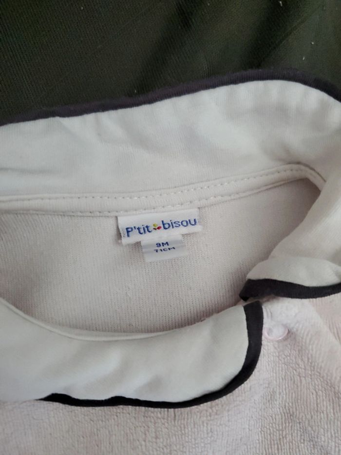Pyjama rose pâle taille 9 mois boutons à l'avant petits nœuds aux pieds de la marque petit bisous