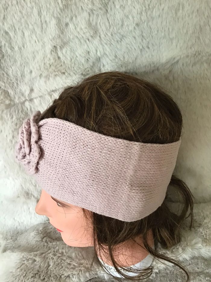 Bandeau tête large 10,5 cm rose avec fleur (0224) - photo numéro 3