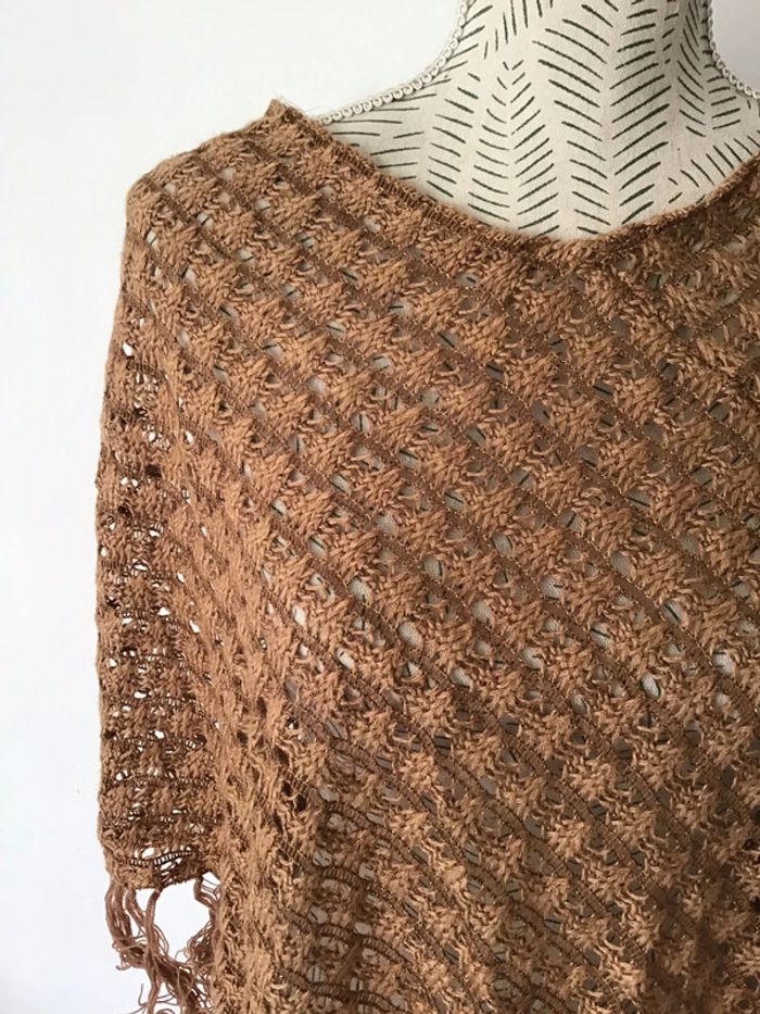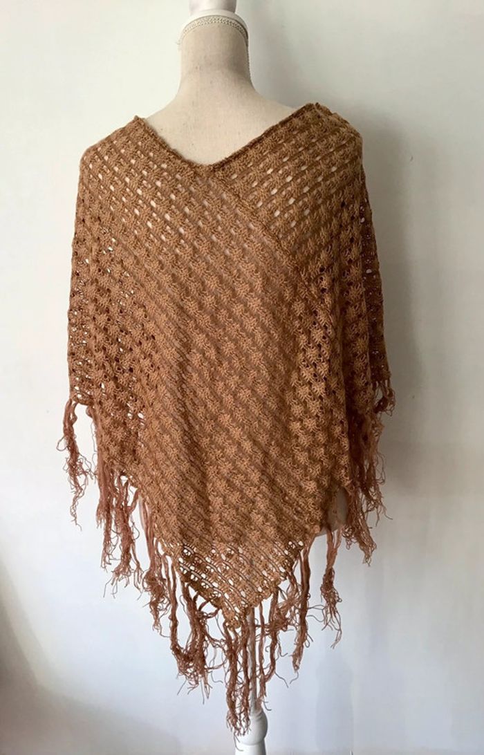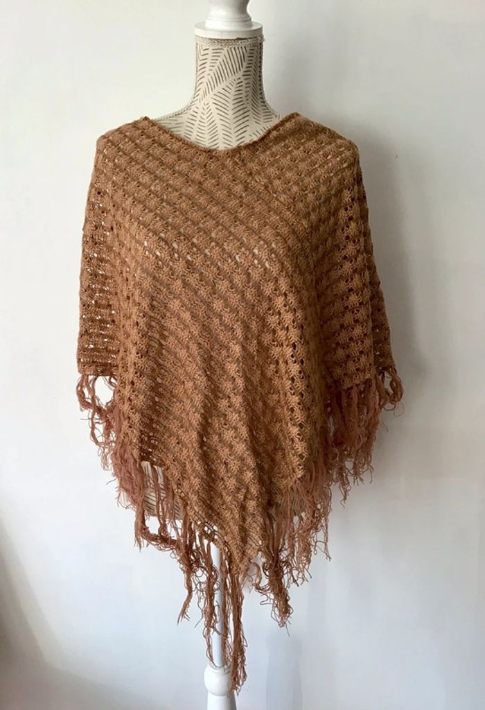 🌸 Poncho de couleur beige marron clair et doré de taille unique 🌸 Non Servis ⚠️⚠️ SI VOUS DÉSIREZ FAIRE UN LOT 📦 🌸N’hésitez pas à me le demander je ferait une annonce globale de vos articles pour faire un seul FDP🌸🌸 ➡️ N’HÉSITEZ PAS À M’AJOUTER DANS VOS FAVORIS 01/24
