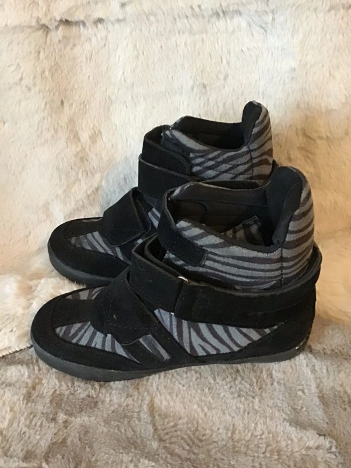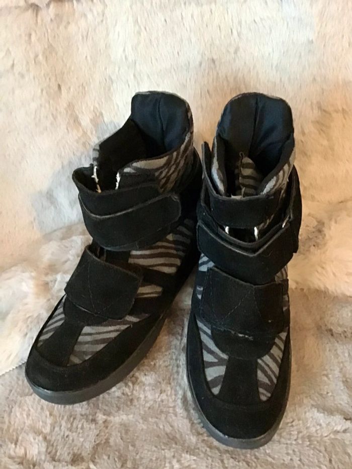 Paire de basket montante noir et grise à scratch taille 37 (0124) - photo numéro 5