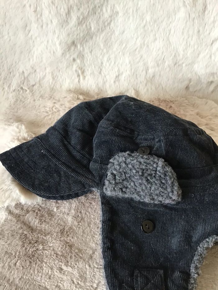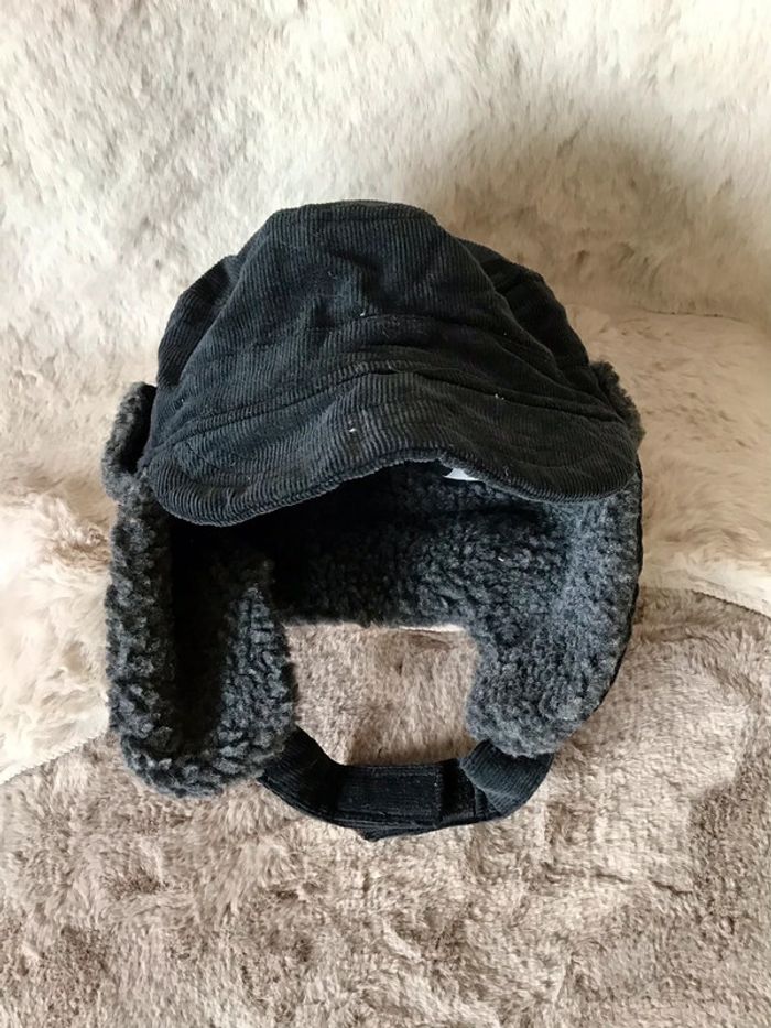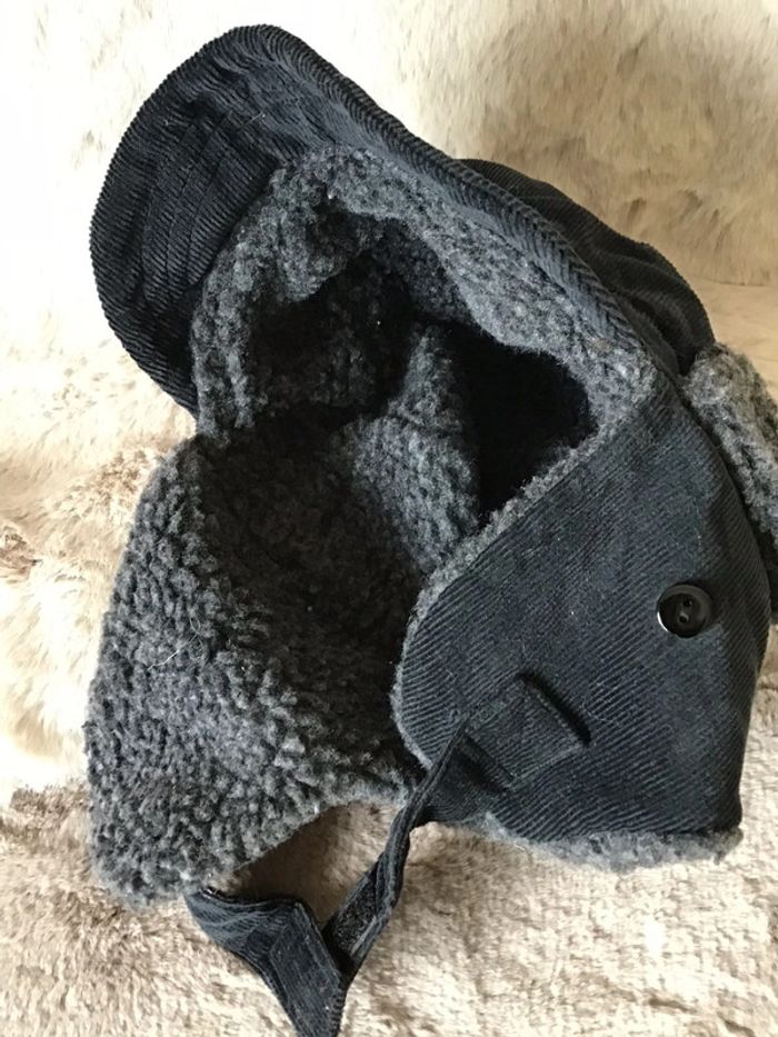 Chapka velours côtelé et molletonné noir et grise taille 52 (0124) - photo numéro 5