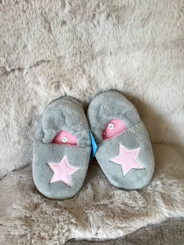 Paire de chaussons taille 27 maintient  élastique gris et rose (0124) - photo numéro 2