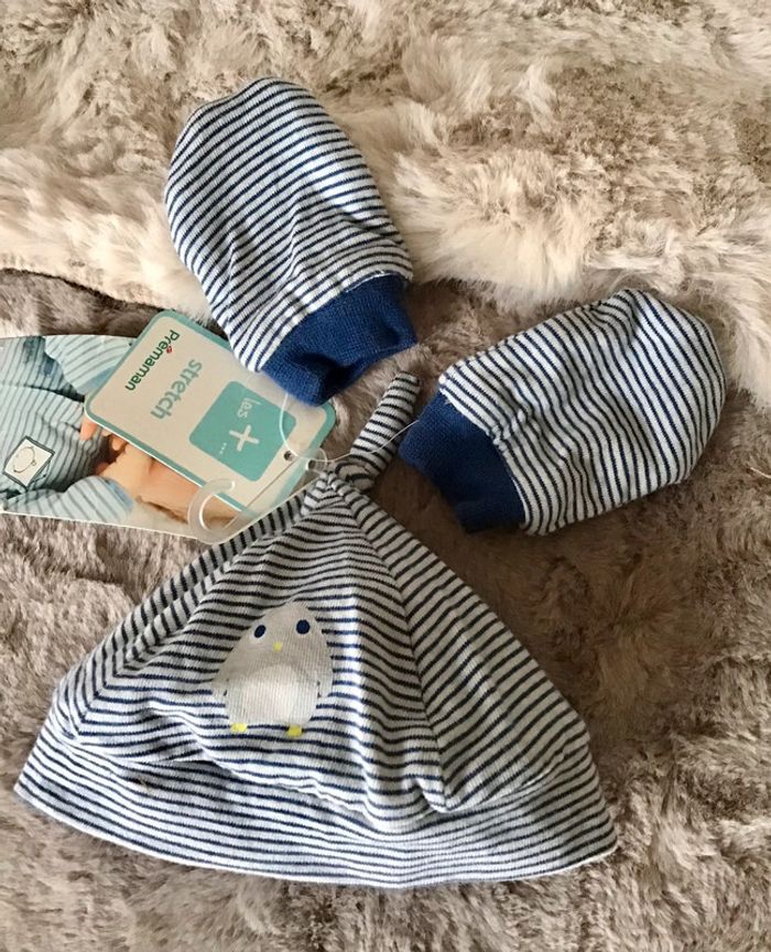 Ensemble bonnet et moufle naissance taille 38 soit 0/3 mois marque Pré maman (1123) - photo numéro 1