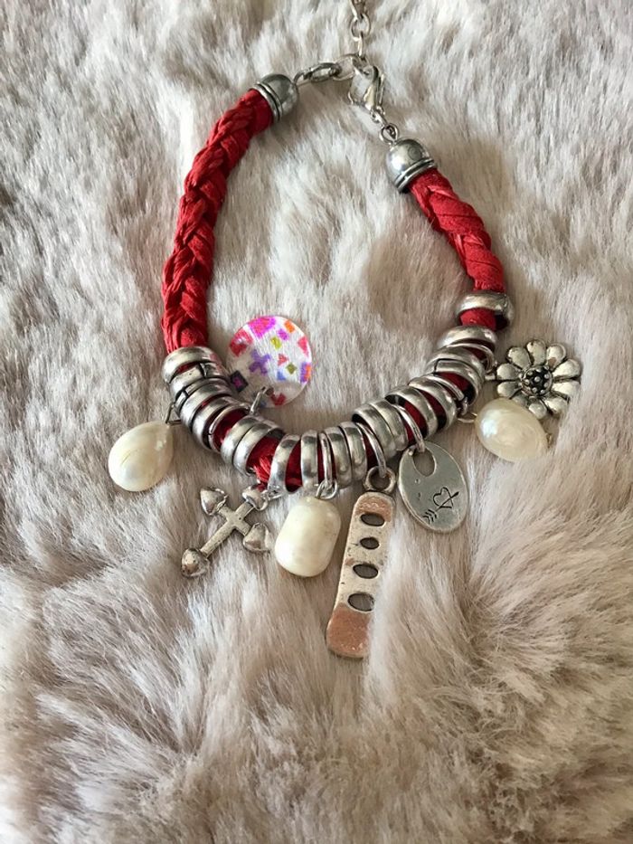 Jolie bracelet avec sequins rouge et argenté (0923) - photo numéro 1