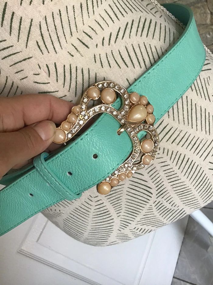 🌸 Jolie Ceinture couleur menthe avec boucle argenté strass et perles 🌸 Non Servis 🌸 Taille 85 , large de 3,7 cm ⚠️⚠️ SI VOUS DÉSIREZ FAIRE UN LOT 📦 🌸N’hésitez pas à me le demander je ferait une annonce globale de vos articles pour faire un seul FDP🌸🌸 ➡️ N’HÉSITEZ PAS À M’AJOUTER DANS VOS FAVORIS 06/23