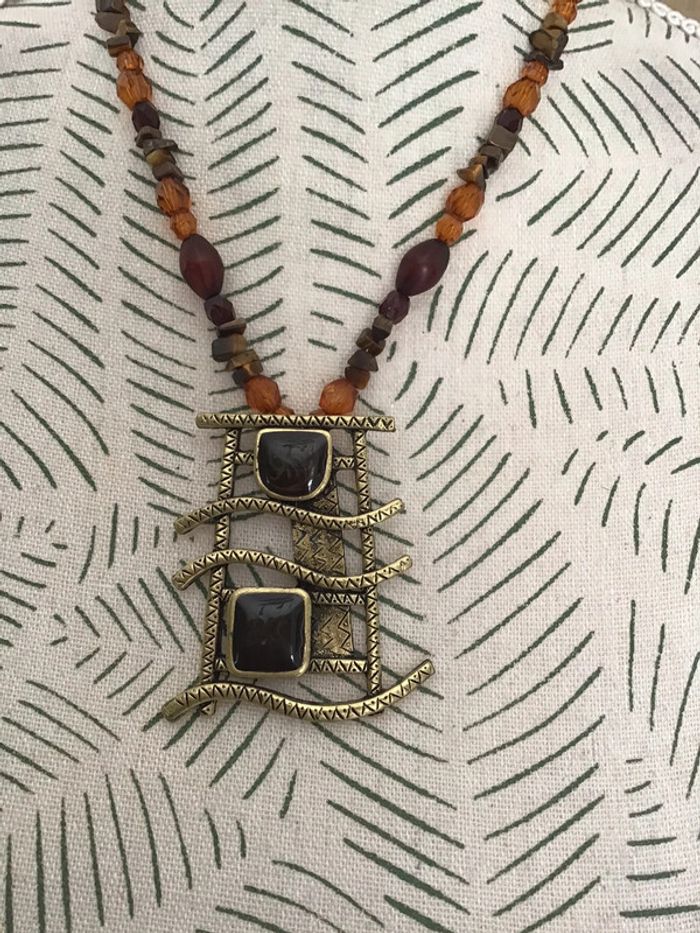 Jolie collier avec pendentif dorée et marron (0623) - photo numéro 1