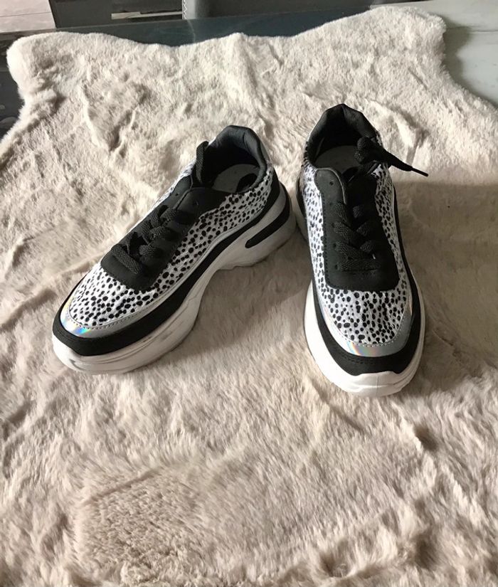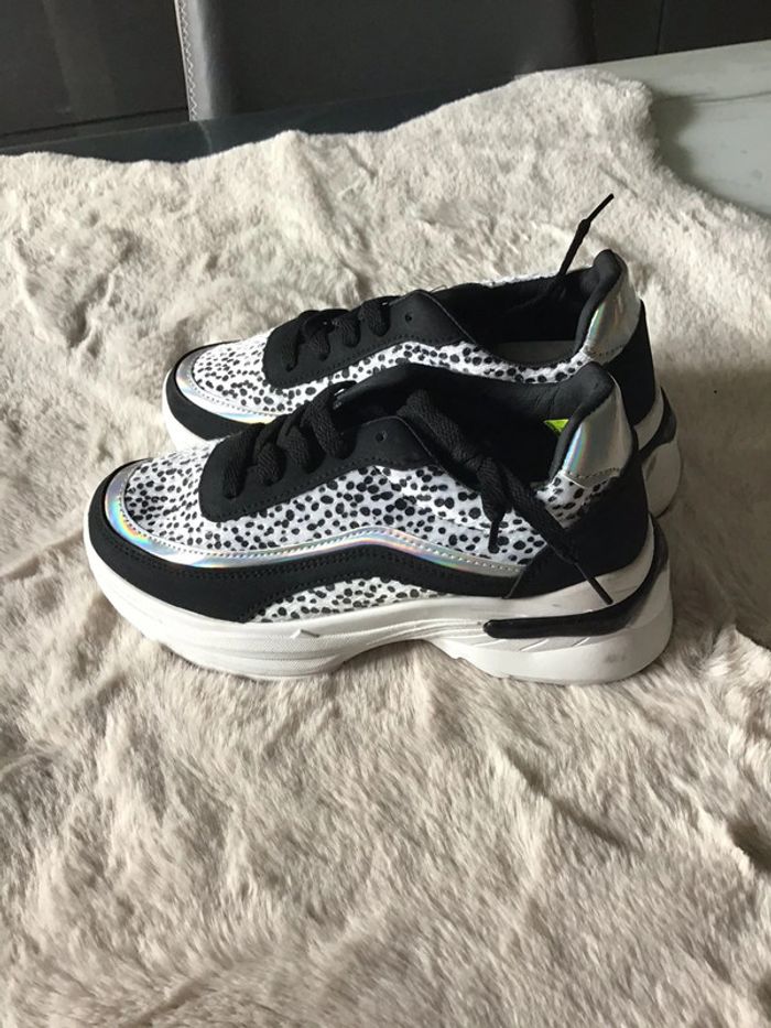 Basket taille 37 tri matière blanc noir et argenté - photo numéro 1