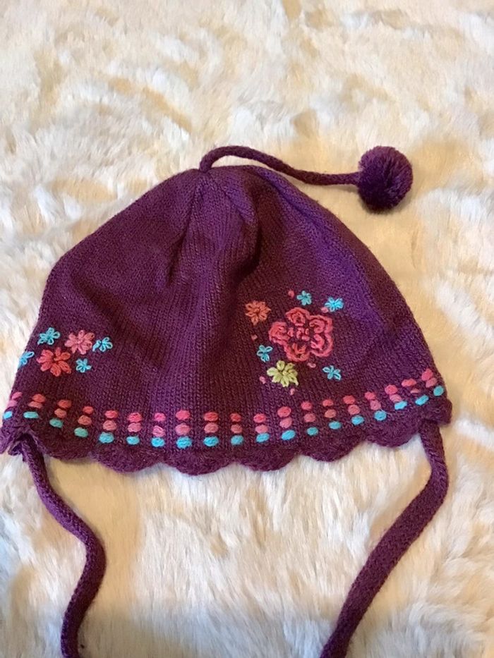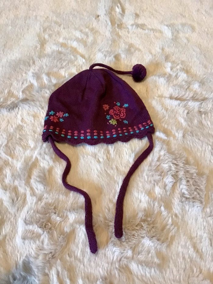 Bonnet taille 47 violet petite fleur soit 6/12 mois - photo numéro 2