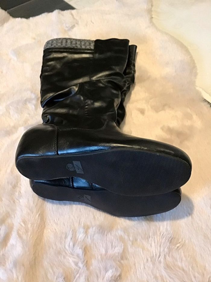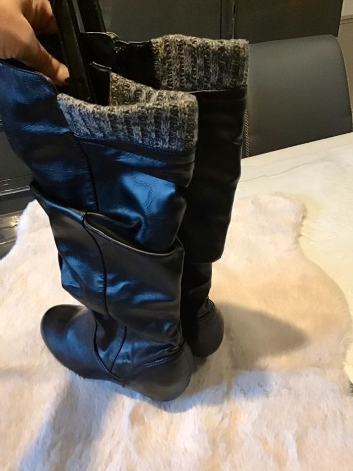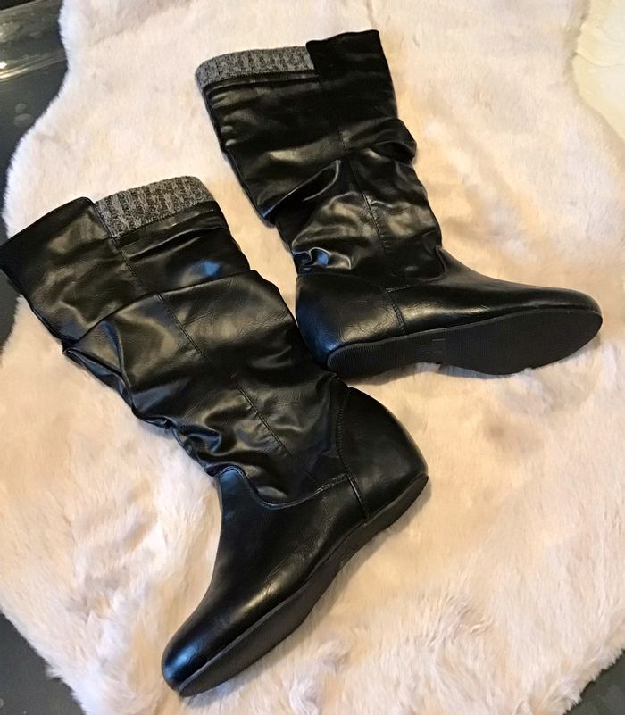 🌸 Paire de botte haute , semelle plate taille 37 🌸 Non Servis 🌸 Avec fermeture sur le côté intérieur, sur le haut gris chiné en tissu laine acrylique 🌸 Haute de 38 cm ⚠️⚠️ SI VOUS DÉSIREZ FAIRE UN LOT 📦 🌸N’hésitez pas à me le demander je ferait une annonce globale de vos articles pour faire un seul FDP🌸🌸 ➡️ N’HÉSITEZ PAS À M’AJOUTER DANS VOS FAVORIS