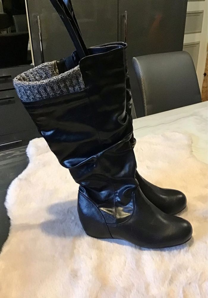 Paire de bottes semelle  plate avec talon cache intérieur taille 37 noir et grise - photo numéro 6