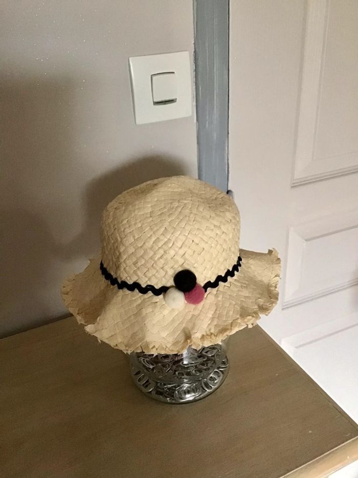 🌸 joli chapeau de paille de taille 43 /46 soit 6-12 mois environ de coloris crème avec contour noir et petits pompon rose blanc et noir Non Servis ⚠️⚠️ SI VOUS DÉSIREZ FAIRE UN LOT 📦 🌸N’hésitez pas à me le demander je ferait une annonce globale de vos articles pour faire un seul FDP🌸🌸🌸 ➡️ N’HÉSITEZ PAS À M’AJOUTER DANS VOS FAVORIS