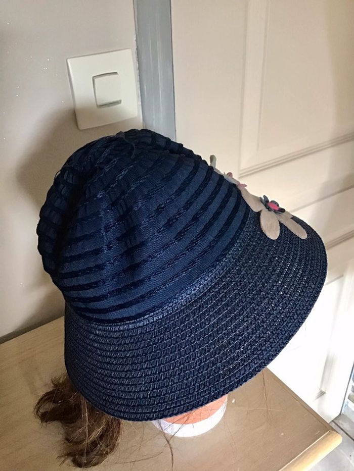 Très beau chapeau 2-3 ans de taille 51/52 de coloris bleu marine avec fleur bleue turquoise et grise - photo numéro 3