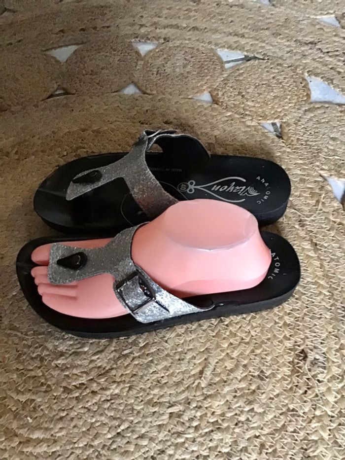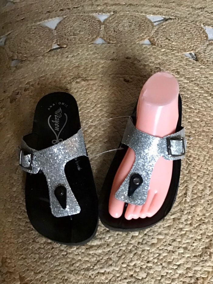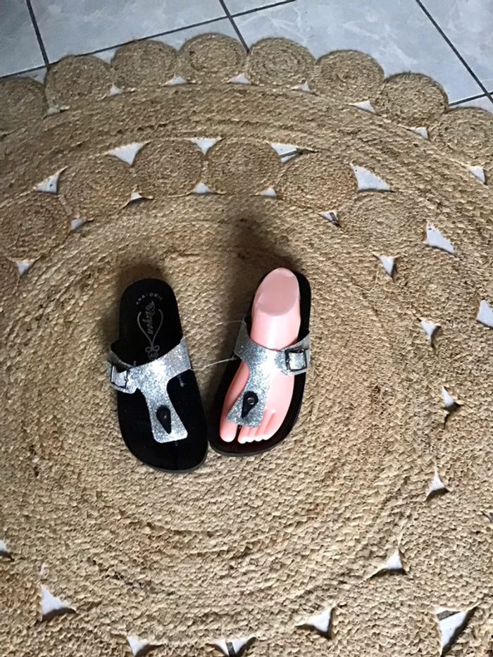 Jolie paire de sandales de couleur argentée de taille 40 semelle anatomique - photo numéro 2