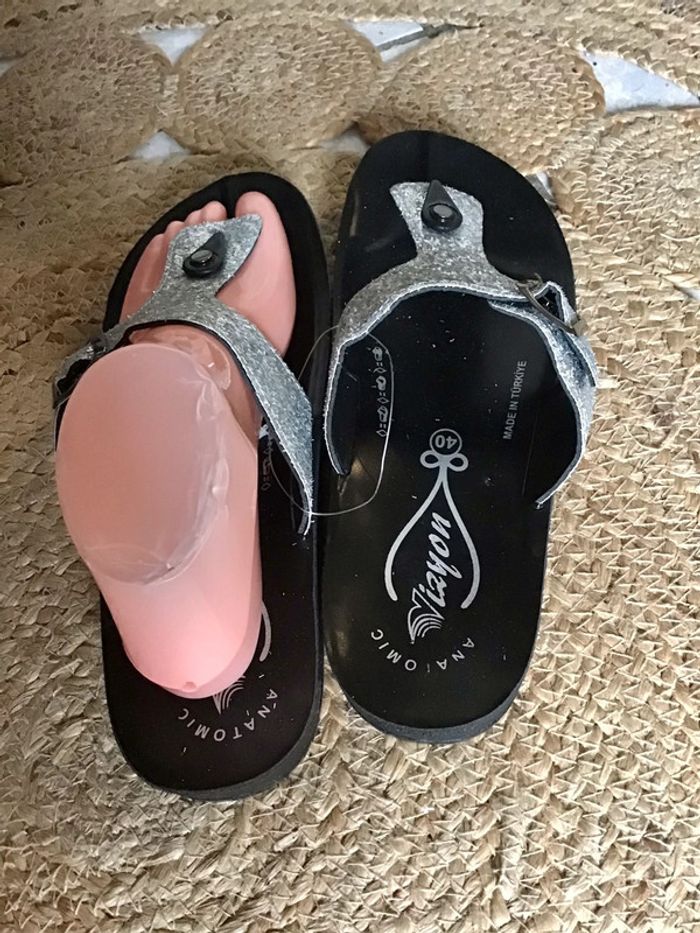 🌸 Très Jolie paire de sandales été taille 40 avec semelle anatomique de coloris argenté avec boucle réglable sur le dessus marque vizyon Non Servis ⚠️⚠️ SI VOUS DÉSIREZ FAIRE UN LOT 📦 🌸N’hésitez pas à me le demander je ferait une annonce globale de vos articles pour faire un seul FDP🌸🌸🌸 ➡️ N’HÉSITEZ PAS À M’AJOUTER DANS VOS FAVORIS