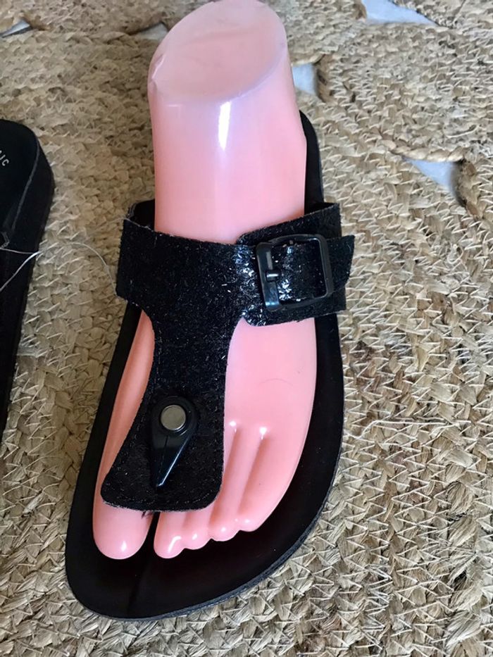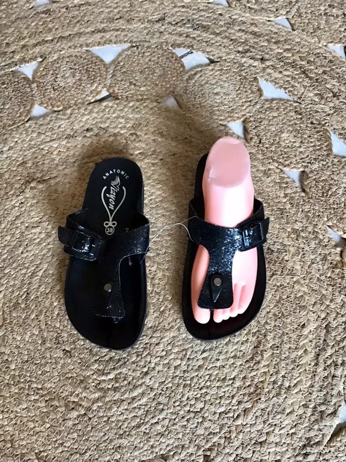 🌸 Paire de sandales été à entre doigts avec semelles anatomique en taille 38 de couleur noir pailletée marque Vizyon Non Servis ⚠️⚠️ SI VOUS DÉSIREZ FAIRE UN LOT 📦 🌸N’hésitez pas à me le demander je ferait une annonce globale de vos articles pour faire un seul FDP🌸🌸🌸 ➡️ N’HÉSITEZ PAS À M’AJOUTER DANS VOS FAVORIS