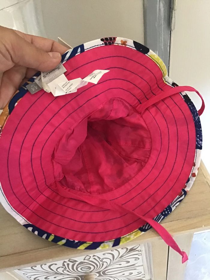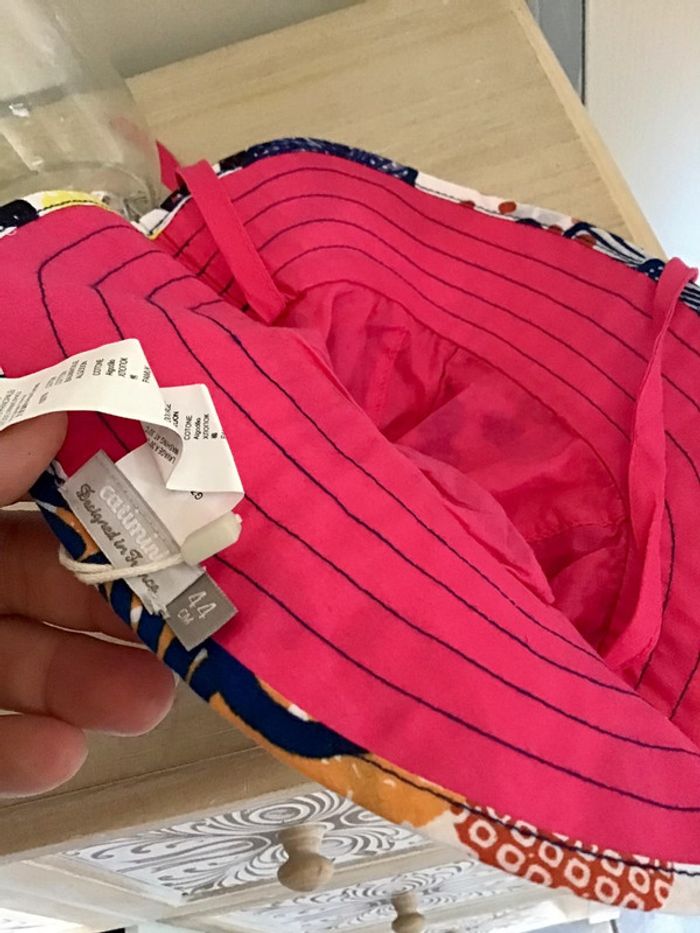 🌸 chapeau réversible de taille 44 de la marque catimini avec cordon de serrage , imprimé sur l’extérieur et coloris rose à l’intérieur, 100 % coton Non Servis ⚠️⚠️ SI VOUS DÉSIREZ FAIRE UN LOT 📦 🌸N’hésitez pas à me le demander je ferait une annonce globale de vos articles pour faire un seul FDP🌸🌸🌸 ➡️ N’HÉSITEZ PAS À M’AJOUTER DANS VOS FAVORIS