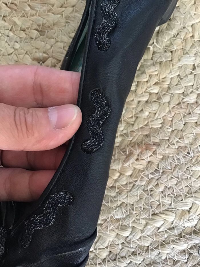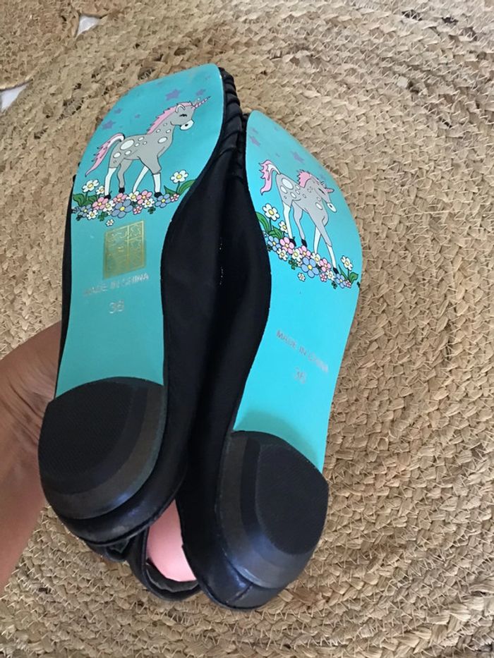 🌸 chaussures en cuir de coloris noir ouverte sur le dessus et au talon de taille 36, avec le ruban noir pailletée sur le dessus et sur tous les trous, avec semelle extérieur motifs licorne Non Servis ⚠️⚠️ SI VOUS DÉSIREZ FAIRE UN LOT 📦 🌸N’hésitez pas à me le demander je ferait une annonce globale de vos articles pour faire un seul FDP🌸🌸🌸 ➡️ N’HÉSITEZ PAS À M’AJOUTER DANS VOS FAVORIS