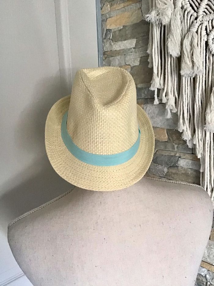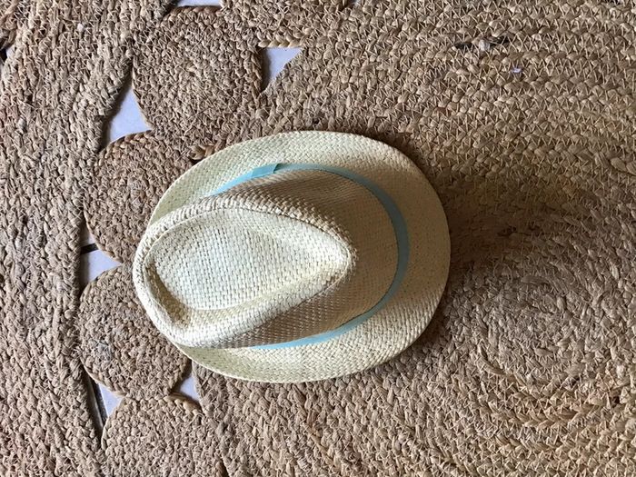 🌸 Chapeau de paille mixte garçon ou fille style borsalino de coloris crème avec un ruban bleu ciel de taille 52 soit 2-4 ans Non Servis ⚠️⚠️ SI VOUS DÉSIREZ FAIRE UN LOT 📦 🌸N’hésitez pas à me le demander je ferait une annonce globale de vos articles pour faire un seul FDP🌸🌸🌸 ➡️ N’HÉSITEZ PAS À M’AJOUTER DANS VOS FAVORIS