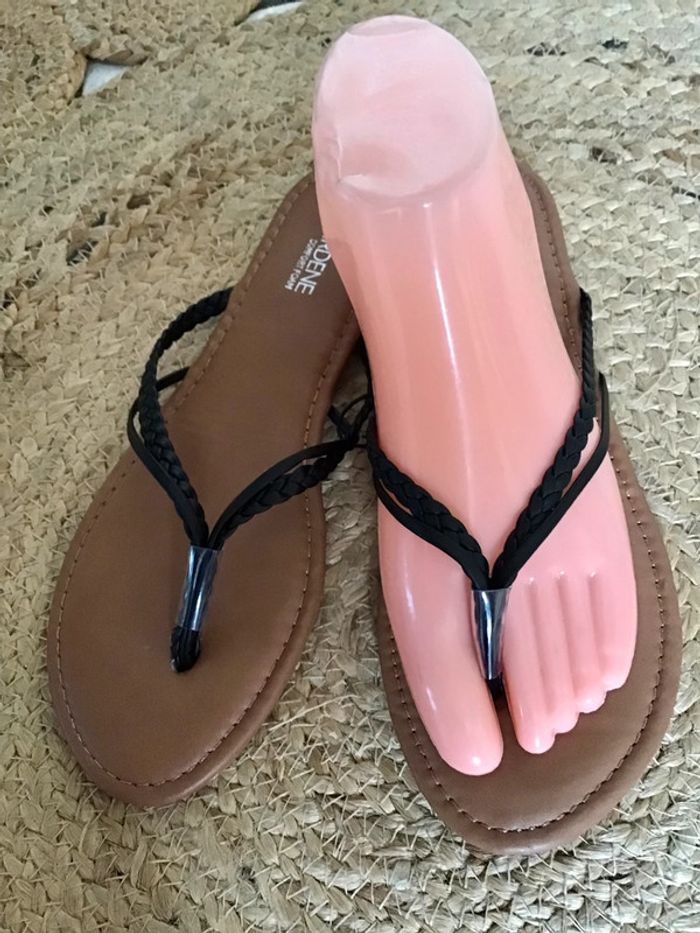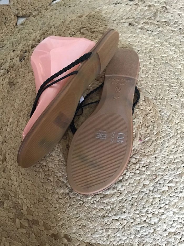 Sandales été double lanières noir sur le dessus de taille 38 - photo numéro 5