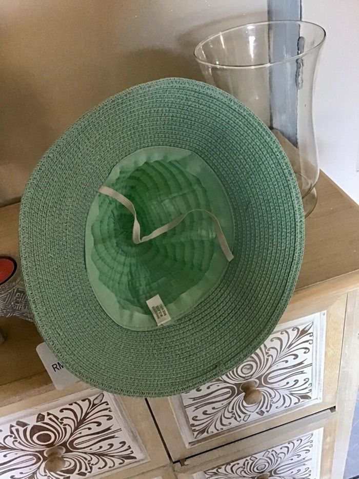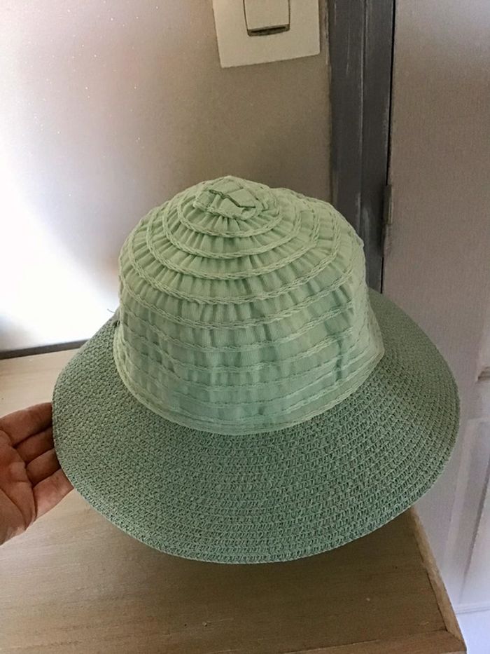 Très joli chapeau de coloris menthe avec petite fleur sur le dessus de 51 cm environ - photo numéro 2