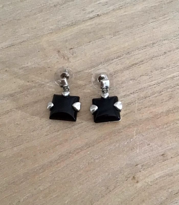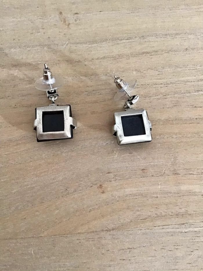 Paire de boucles d’oreilles carré noir et argenté de 1,5 cm - photo numéro 3