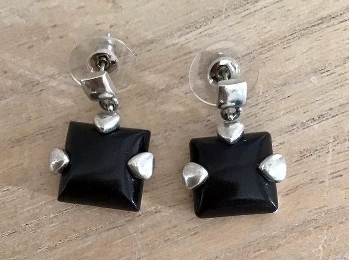 Paire de boucles d’oreilles carré noir et argenté de 1,5 cm - photo numéro 1