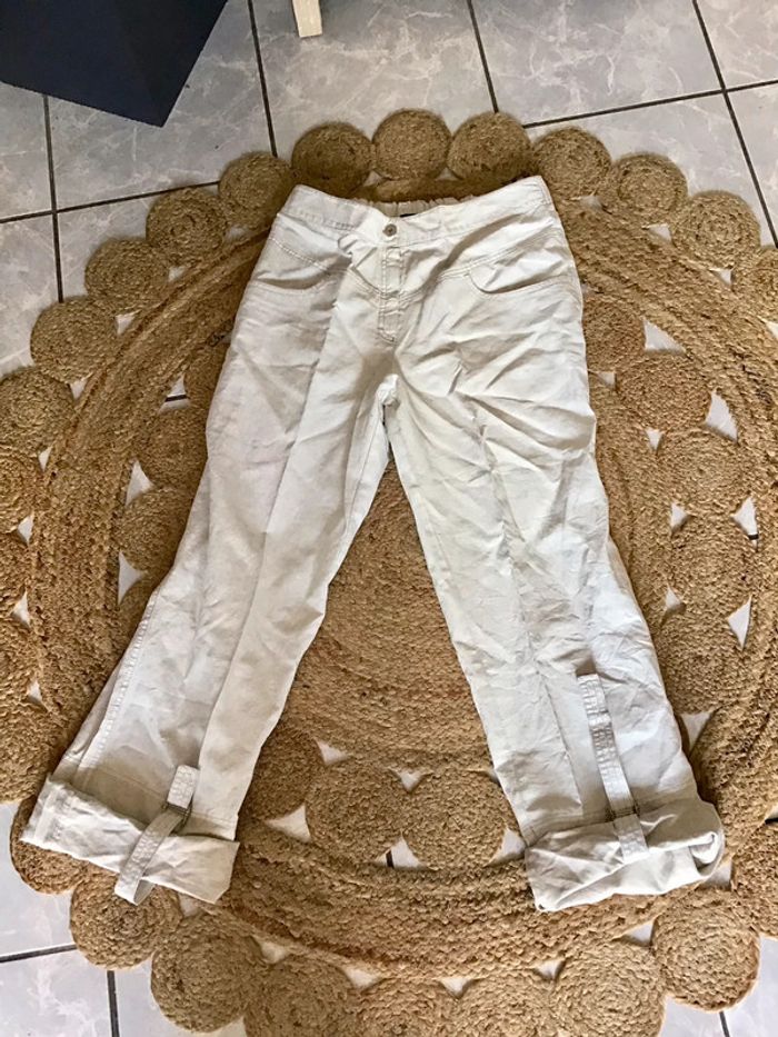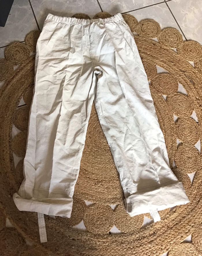 Pantalon Pantacourt en lin taille 42 colorie beige marque Q’Neel - photo numéro 1