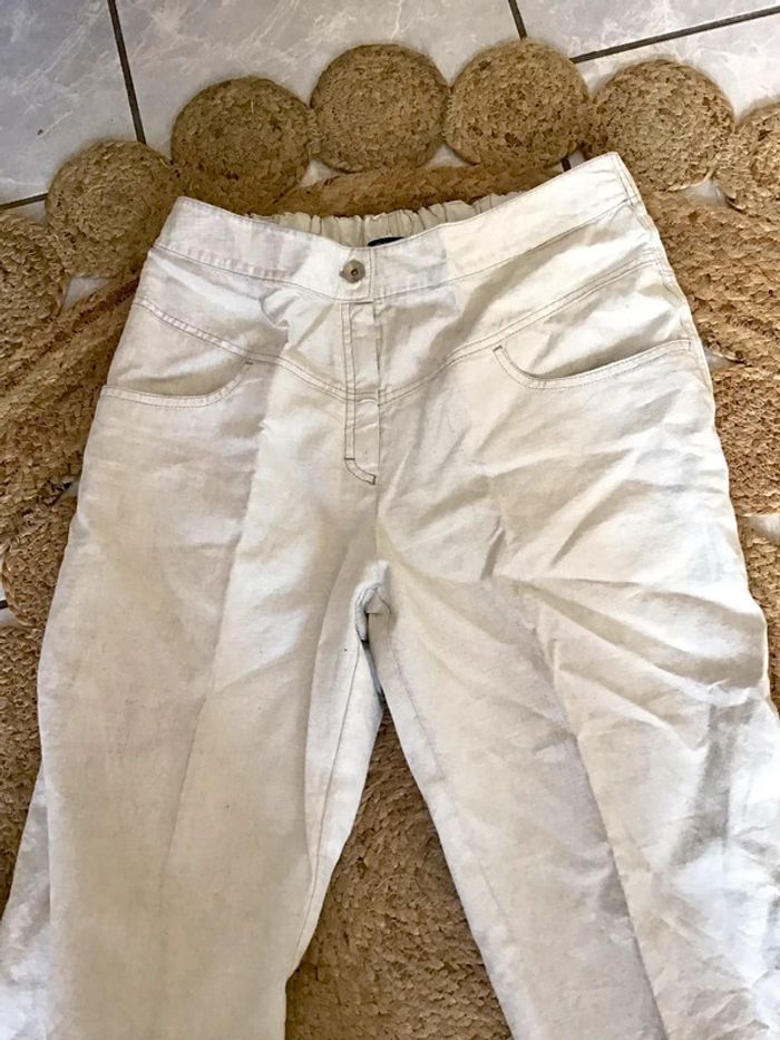 Pantalon Pantacourt en lin taille 42 colorie beige marque Q’Neel - photo numéro 3