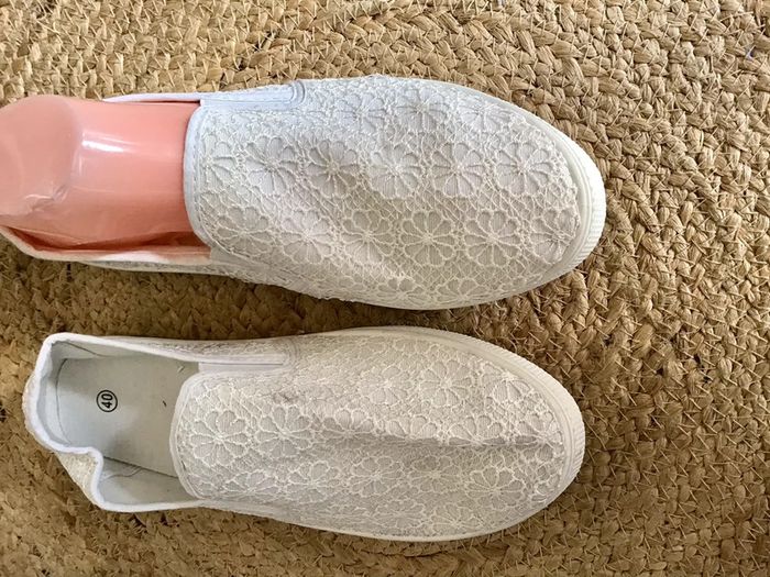Jolie paire de chaussures détente coloris crème avec doublure dentelle sur le dessus en taille 40 - photo numéro 1