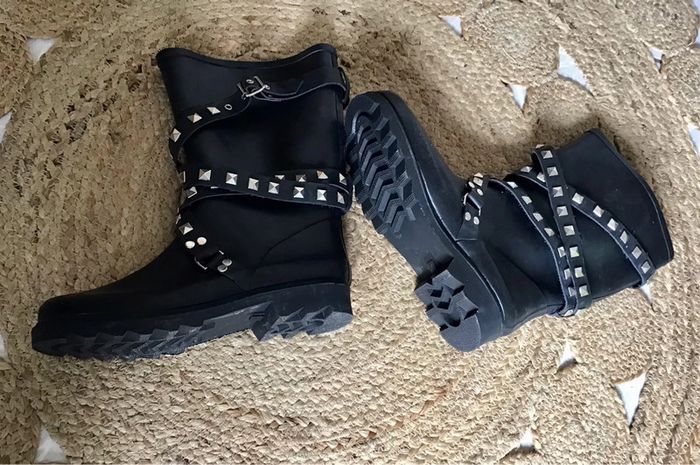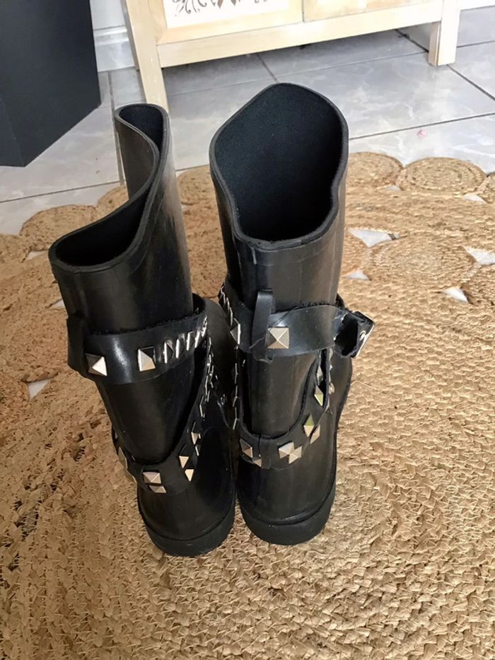 Bottes en caoutchouc de pluie en  39  de coloris noir avec lanières noir et argenté - photo numéro 1