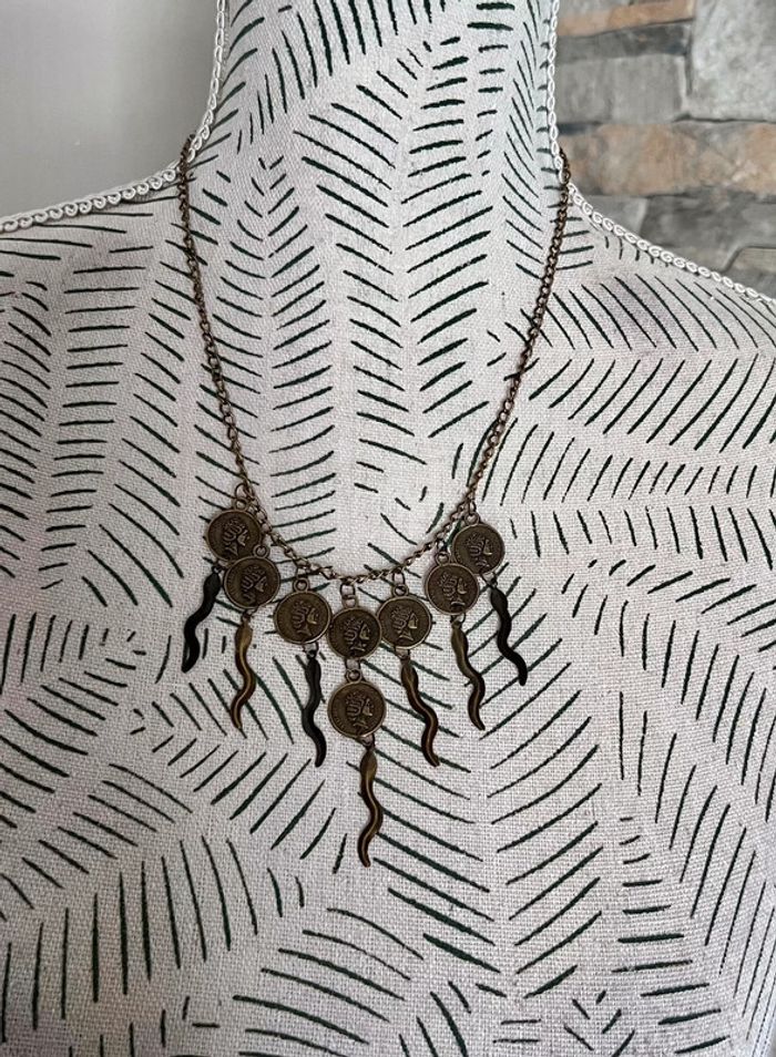 🌸 jolie collier avec breloque petite pièces de coloris cuivré Non Servis ⚠️⚠️ SI VOUS DÉSIREZ FAIRE UN LOT 📦 🌸N’hésitez pas à me le demander je ferait une annonce globale de vos articles pour faire un seul FDP🌸🌸🌸 ➡️ N’HÉSITEZ PAS À M’AJOUTER DANS VOS FAVORIS