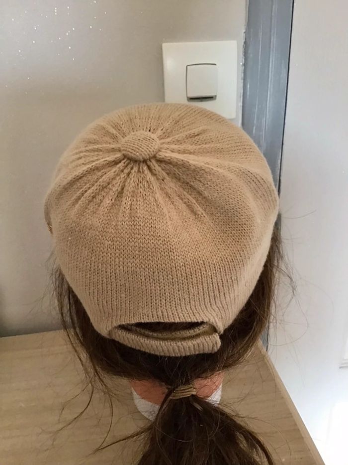 Casquette en laine couleur beige avec les strass Doré sur le côté en taille 55 - photo numéro 4