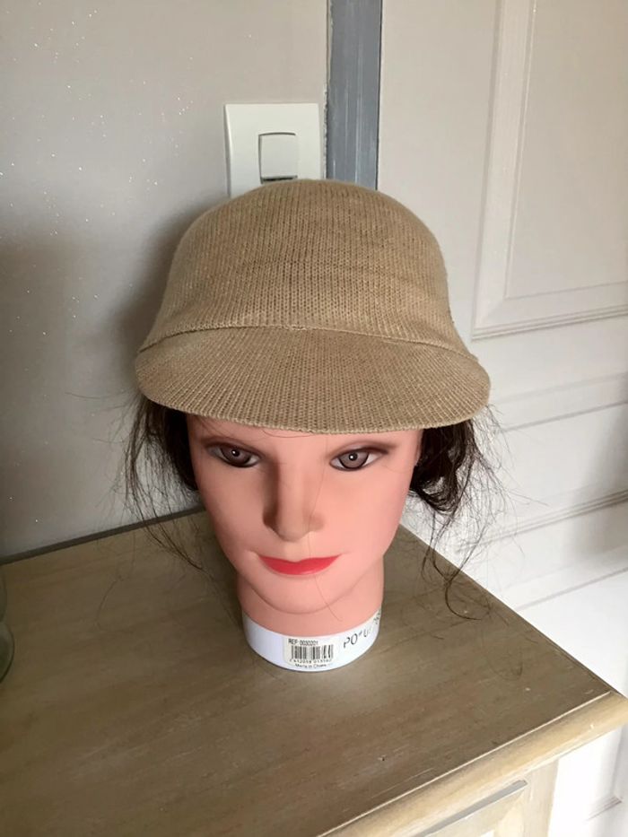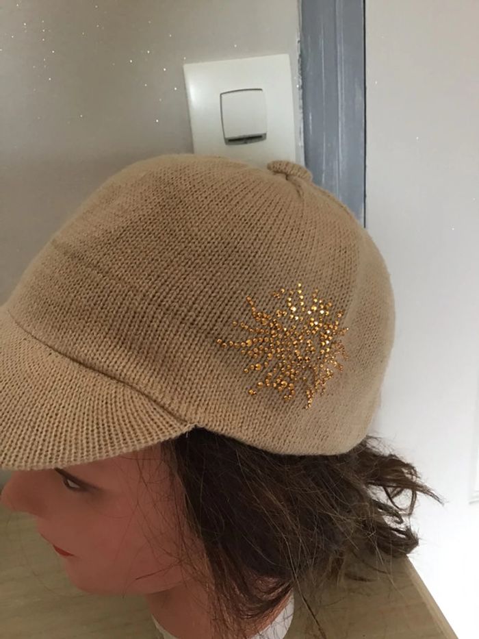 Casquette en laine couleur beige avec les strass Doré sur le côté en taille 55 - photo numéro 2