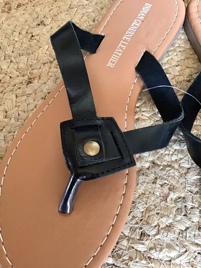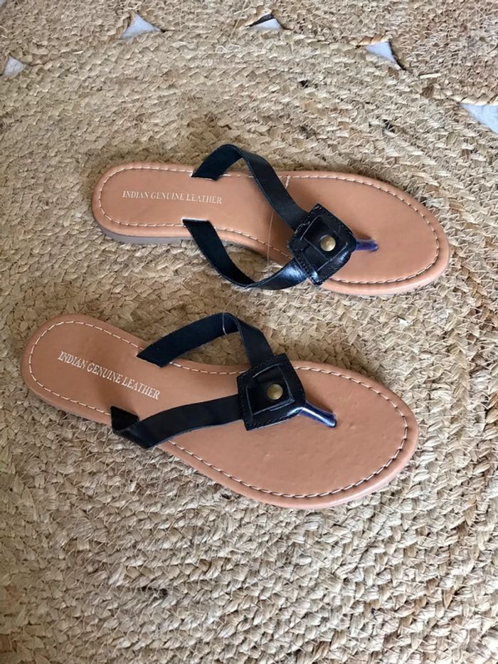 🌸 très jolie paire de sandales été en cuir de coloris noir à entre doigts Non Servis 🌸De taille 38 ⚠️⚠️ SI VOUS DÉSIREZ FAIRE UN LOT 📦 🌸N’hésitez pas à me le demander je ferait une annonce globale de vos articles pour faire un seul FDP🌸🌸🌸 ➡️ N’HÉSITEZ PAS À M’AJOUTER DANS VOS FAVORIS