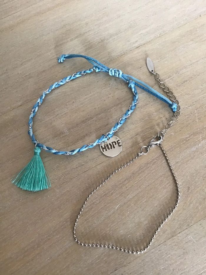 🌸 2 bracelets turquoise et argenté à porter ensemble , 1 tissu fil de couleur turquoise et argenté et une gourmette fine argenté Non Servis ⚠️⚠️ SI VOUS DÉSIREZ FAIRE UN LOT 📦 🌸N’hésitez pas à me le demander je ferait une annonce globale de vos articles pour faire un seul FDP🌸🌸🌸 ➡️ N’HÉSITEZ PAS À M’AJOUTER DANS VOS FAVORIS