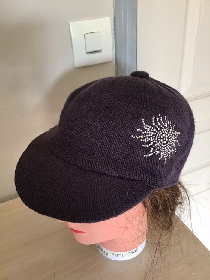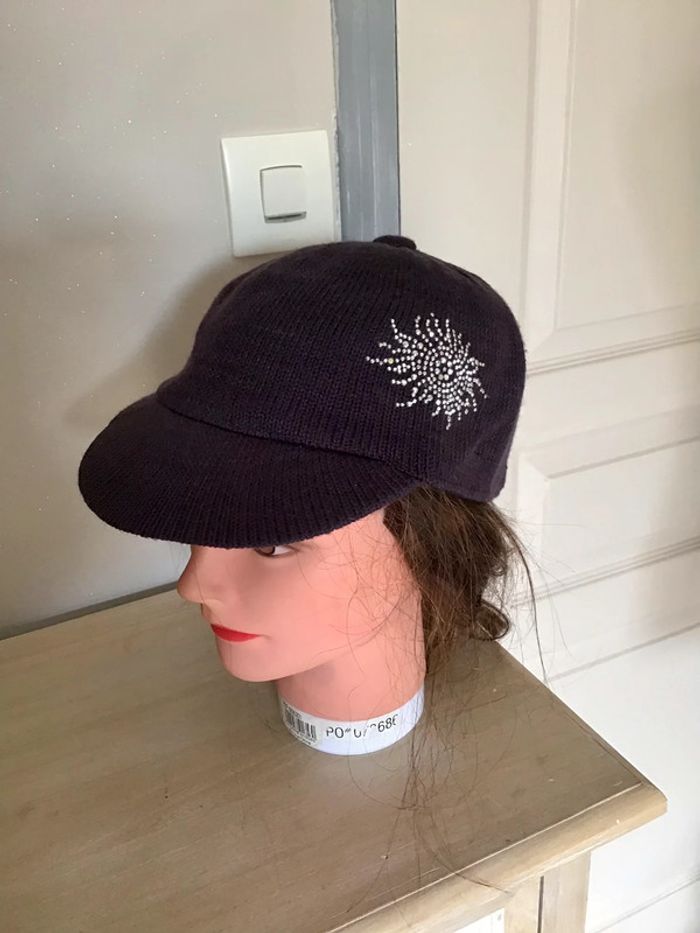 Casquette violette en laine avec strass argenté taille 57 - photo numéro 4