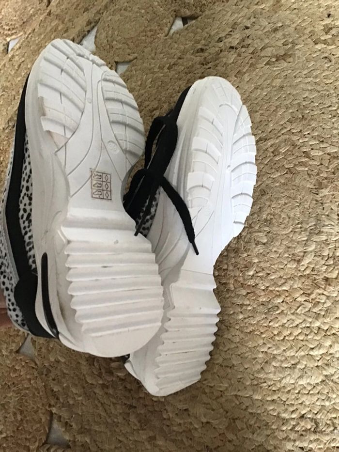 🌸 paire de baskets de 3 matières différentes, de coloris noir blanche et argenté, en taille 39 Non Servis 🌸 avec grosse semelle de 6 cm à l’arrière est devant 2 cm 🌸 une légère petite trace sur le devant les chaussures mais pas méchant voir dernière photo, c’est du au stockage ⚠️⚠️ SI VOUS DÉSIREZ FAIRE UN LOT 📦 🌸N’hésitez pas à me le demander je ferait une annonce globale de vos articles pour faire un seul FDP🌸🌸🌸 ➡️ N’HÉSITEZ PAS À M’AJOUTER DANS VOS FAVORIS