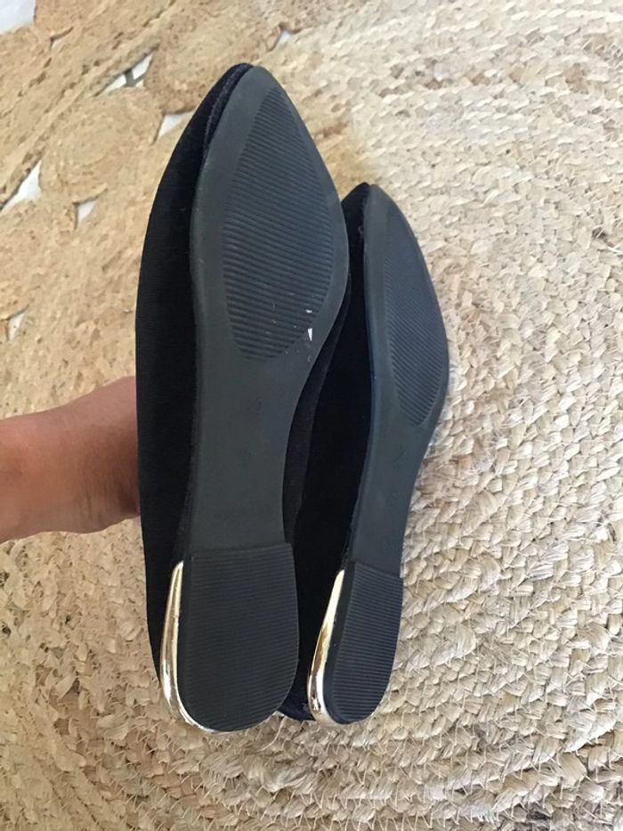 🌸 chaussures plates de couleur noir et doré au niveau du talon en taille 36 Non Servis ⚠️⚠️ SI VOUS DÉSIREZ FAIRE UN LOT 📦 🌸N’hésitez pas à me le demander je ferait une annonce globale de vos articles pour faire un seul FDP🌸🌸🌸 ➡️ N’HÉSITEZ PAS À M’AJOUTER DANS VOS FAVORIS