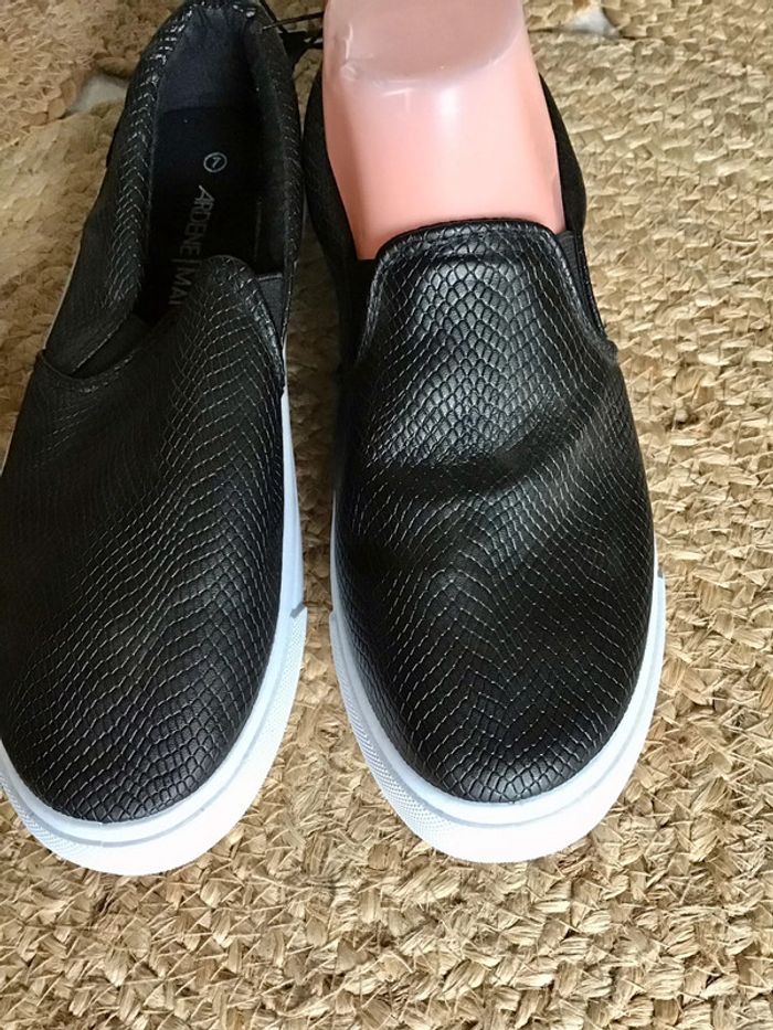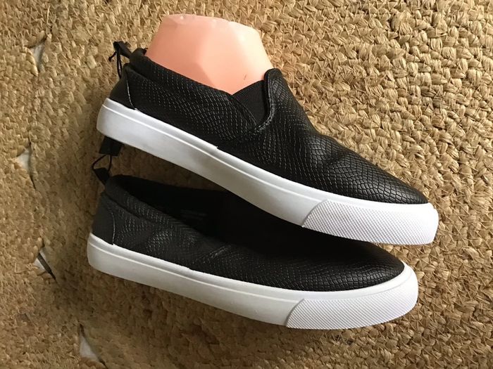 🌸 Chaussure détente de coloris noir et blanche effet peau de serpent de taille 37 Non Servis 🌸 petites traces sur les côtés de la semelle voir les dernières photos mais pas méchant jamais été porté ( d’où le petit prix ) ⚠️⚠️ SI VOUS DÉSIREZ FAIRE UN LOT 📦 🌸N’hésitez pas à me le demander je ferait une annonce globale de vos articles pour faire un seul FDP🌸🌸🌸 ➡️ N’HÉSITEZ PAS À M’AJOUTER DANS VOS FAVORIS