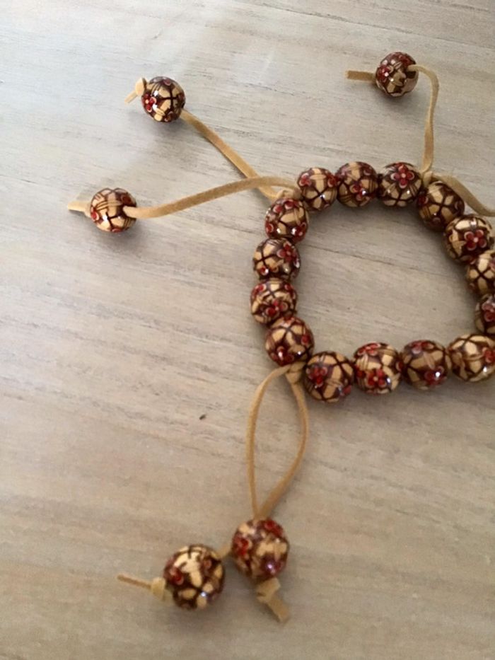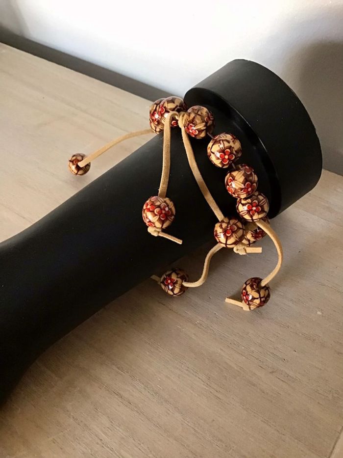 Bracelet  perles taille élastique beige marron rouge - photo numéro 2