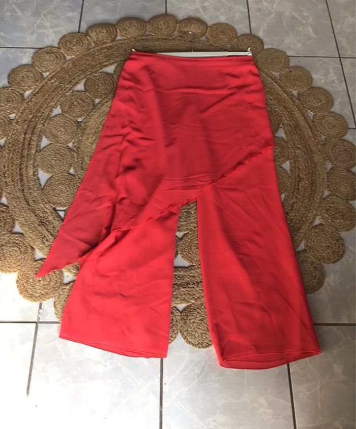 Très beau pantalon doublé taille 44 couleur corail avc pièce asymétrique sur le dessus - photo numéro 2