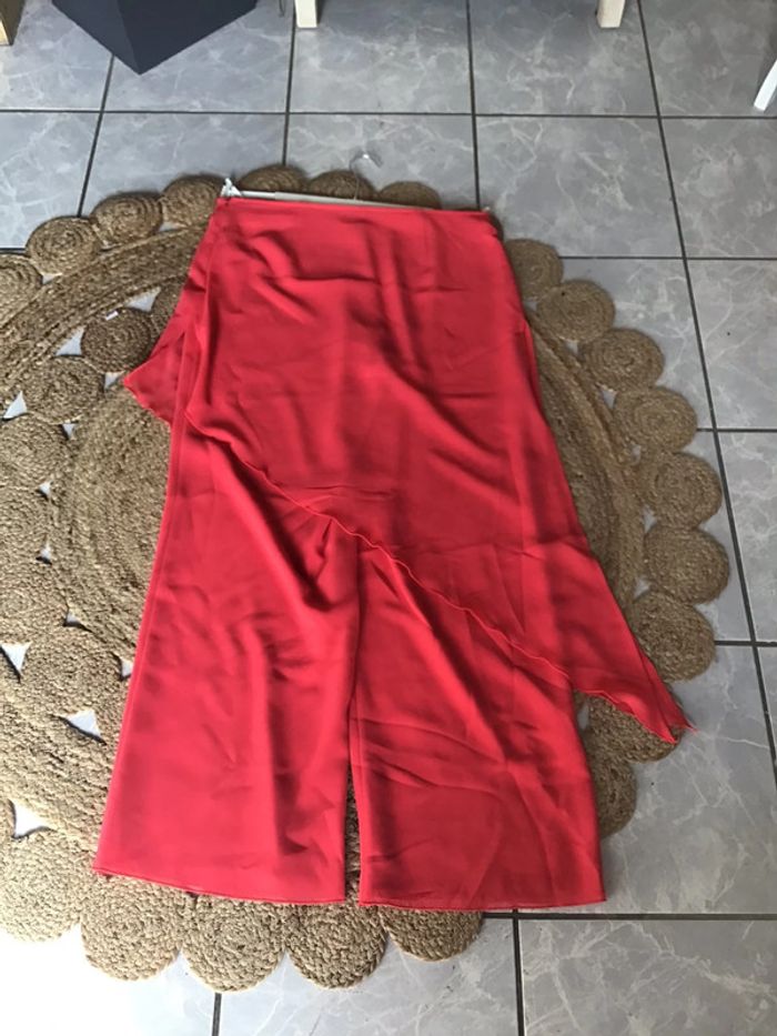 Très beau pantalon doublé taille 44 couleur corail avc pièce asymétrique sur le dessus