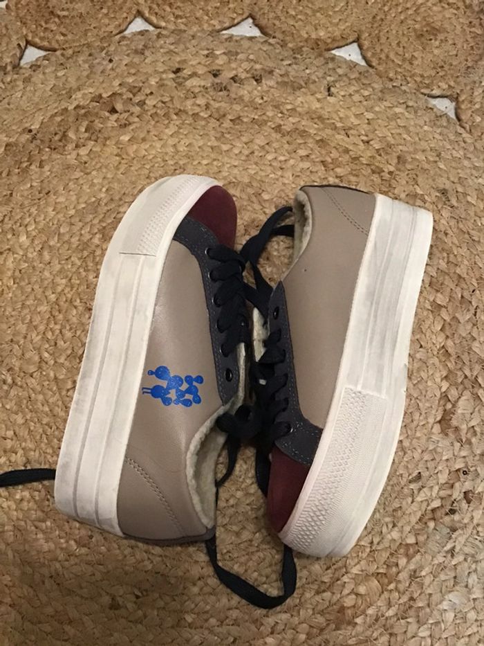 🌸 paire de chaussures grosse semelle de 4 cm de haut , molletonné intérieur en taille 35 de trois coloris Non Servis 🌸 Bordeaux beige et bleu, un léger petit trou au niveau de l’antivol sur le côté intérieur ne se voit pratiquement pas, quelques traces sur la Semelle pas méchant voir les photos , non jamais été mise . Mixte ⚠️⚠️ SI VOUS DÉSIREZ FAIRE UN LOT 📦 🌸N’hésitez pas à me le demander je ferait une annonce global de vos articles pour faire un seul FDP🌸🌸🌸 ➡️ N’HÉSITEZ PAS À M’AJOUTER DANS VOS FAVORIS